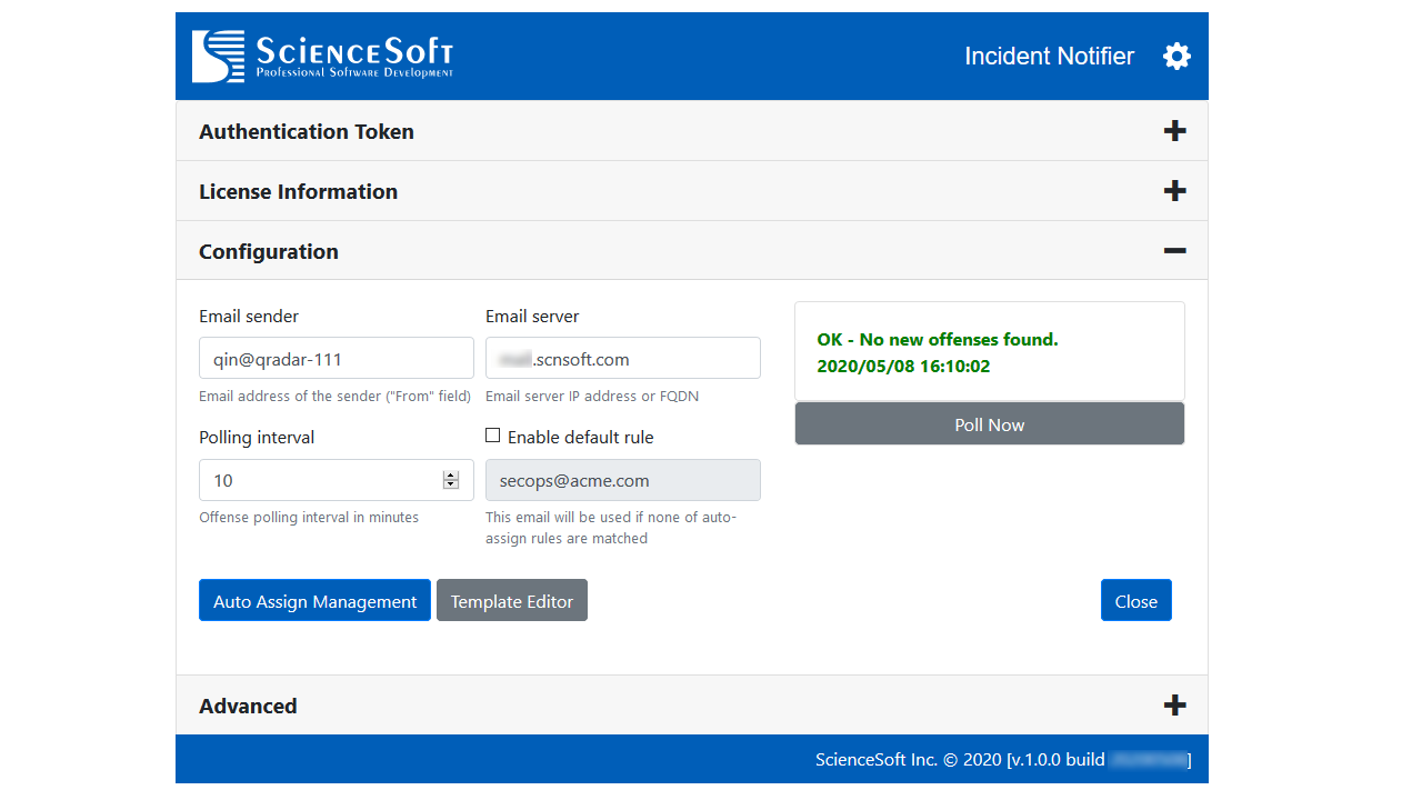 QIN Incident Notifier by ScienceSoft allows administrators to perform these tasks simply and configure notifications to be sent not only via email (incl. custom templates) but also via Twillio SMS, Telegram, and Slack messaging services.