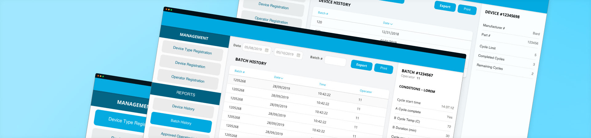 - يوفر قسم التقارير للمستخدمين سجلات عن تعقيم الأجهزة والأدوات الطبية، ومعلومات عن الدورات المكتملة والمتبقية لإعادة المعالجة، ومعلومات عن عوامل إعادة المعالجة.