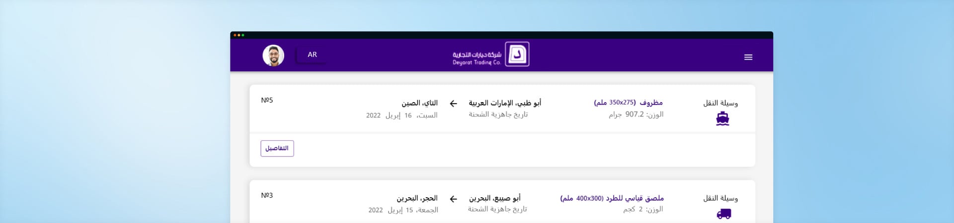 تطوير سوق إلكتروني لخدمات الشحن لشركة ديارات التجارية