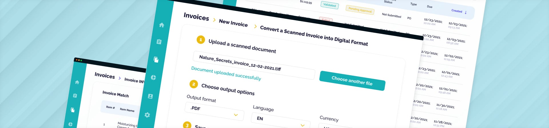 - AI-powered validation of invoice data at the line-item level (invoice number, date, quantity, price, etc.) and identification of invoice exceptions, such as missed, mismatched, duplicate or inaccurate data.