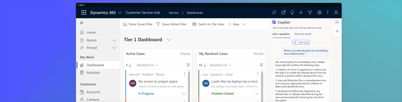 Dynamics 365 Customer Service, Microsoft Copilot Studio.