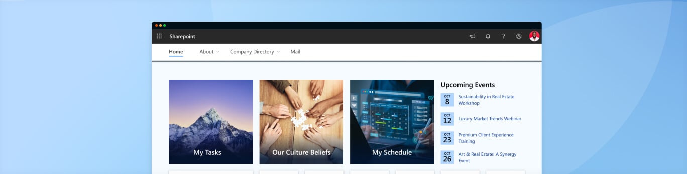 At the end of the project, the Client got a customized corporate intranet with an improved look and feel and wider capabilities, including: