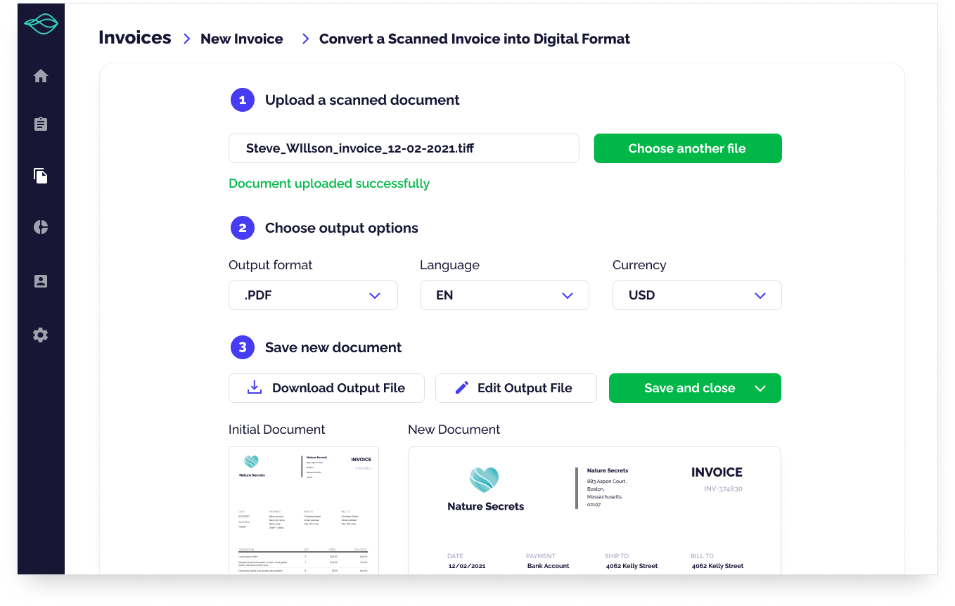 - OCR-enabled conversion of paper invoices into a pre-defined digital format.