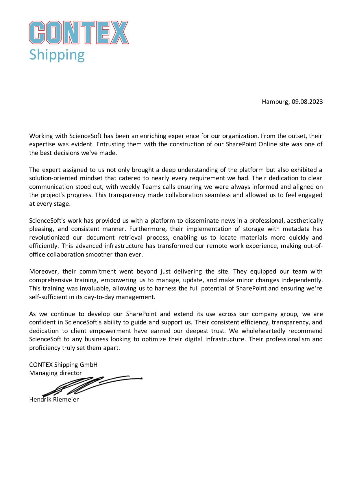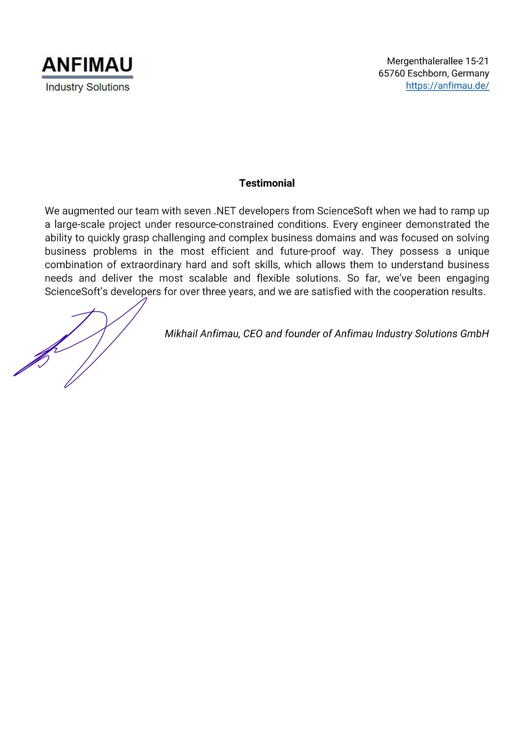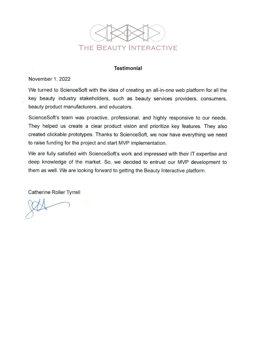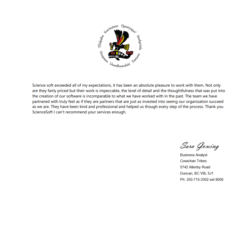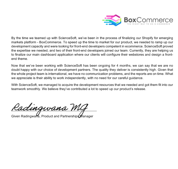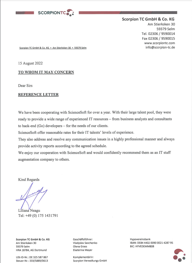 We would definitely recommend ScienceSoft as skilled and trustworthy consulting and development partner.