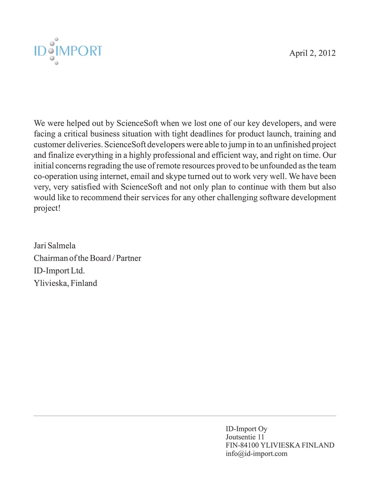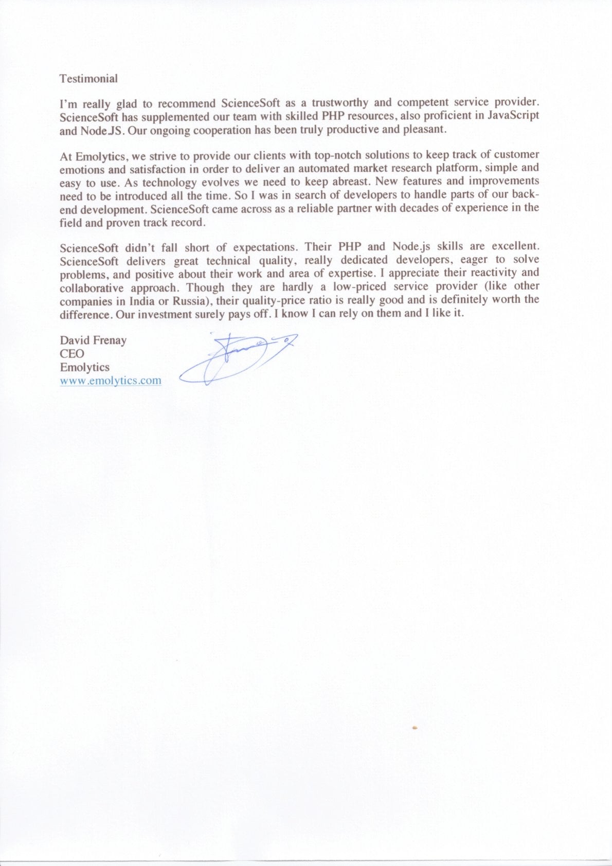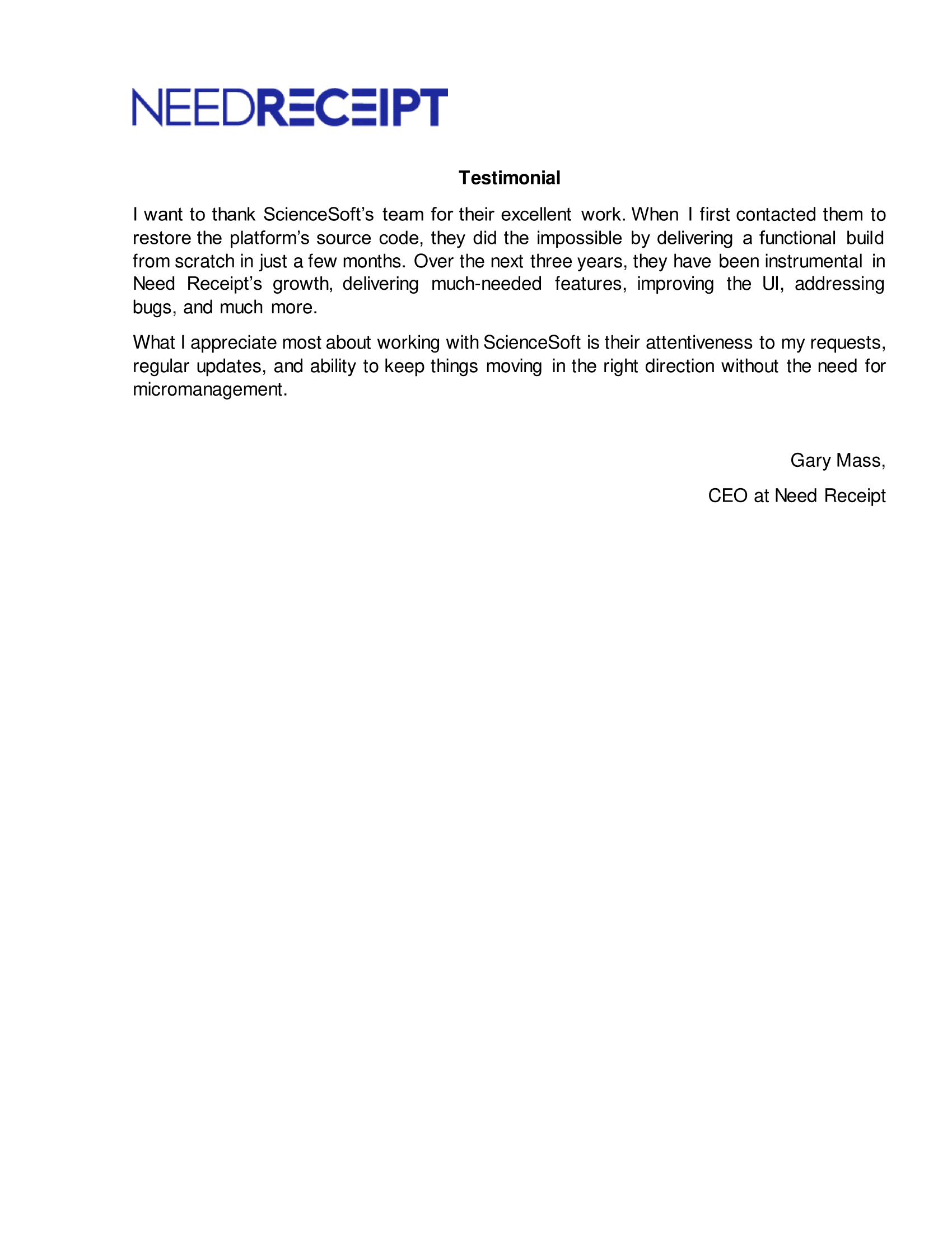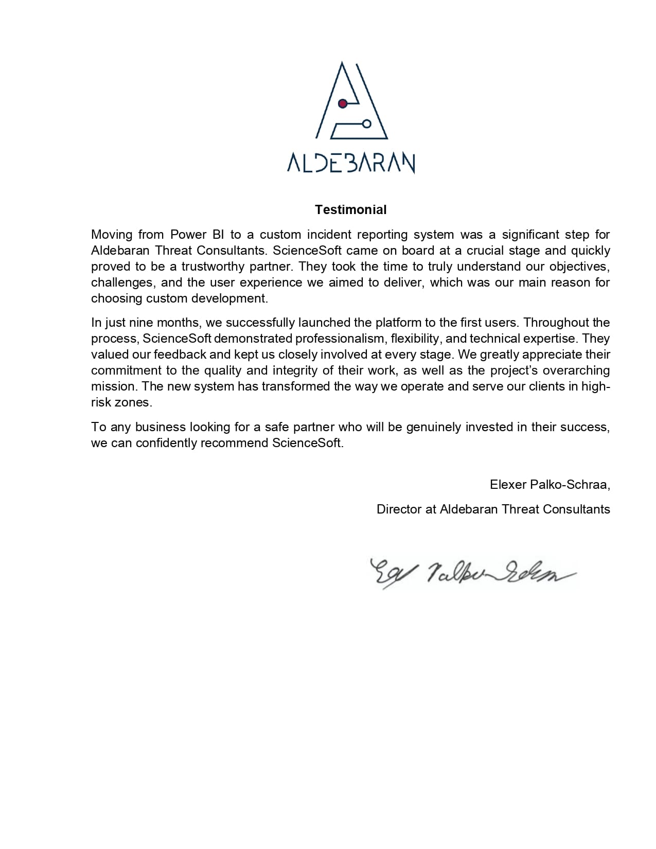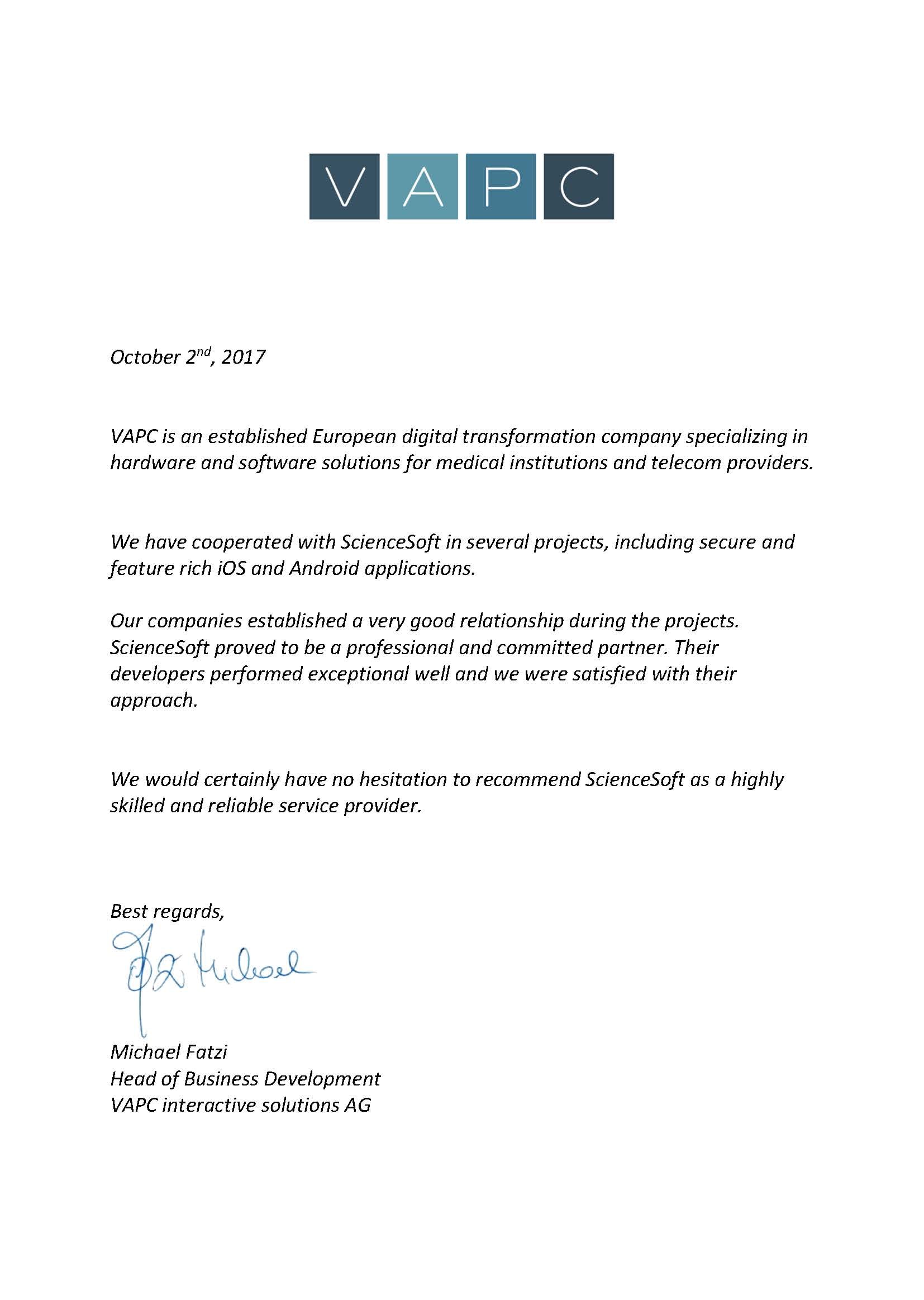 We would definitely recommend ScienceSoft as skilled and trustworthy consulting and development partner.