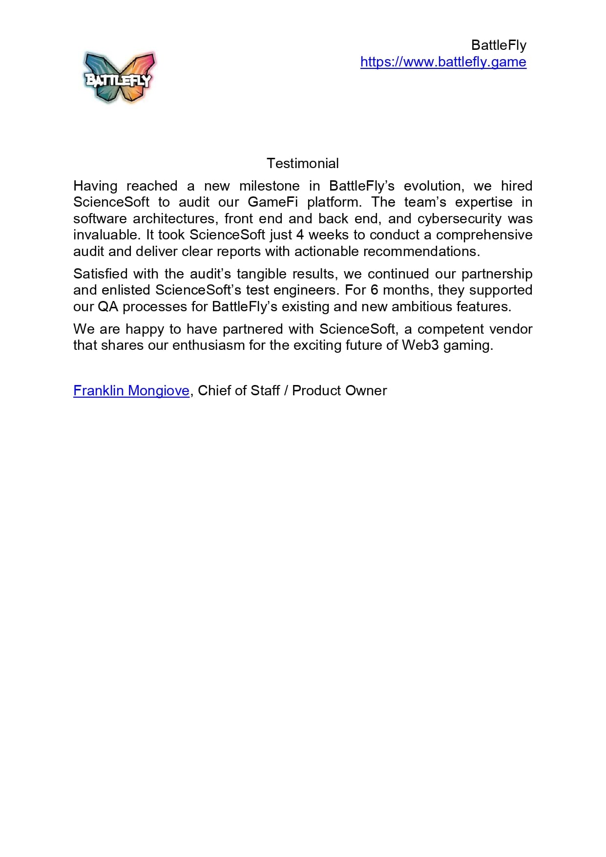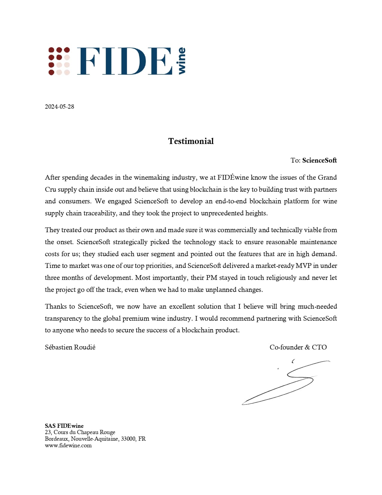 I would recommend partnering with ScienceSoft to anyone who needs to secure the success of a blockchain product.