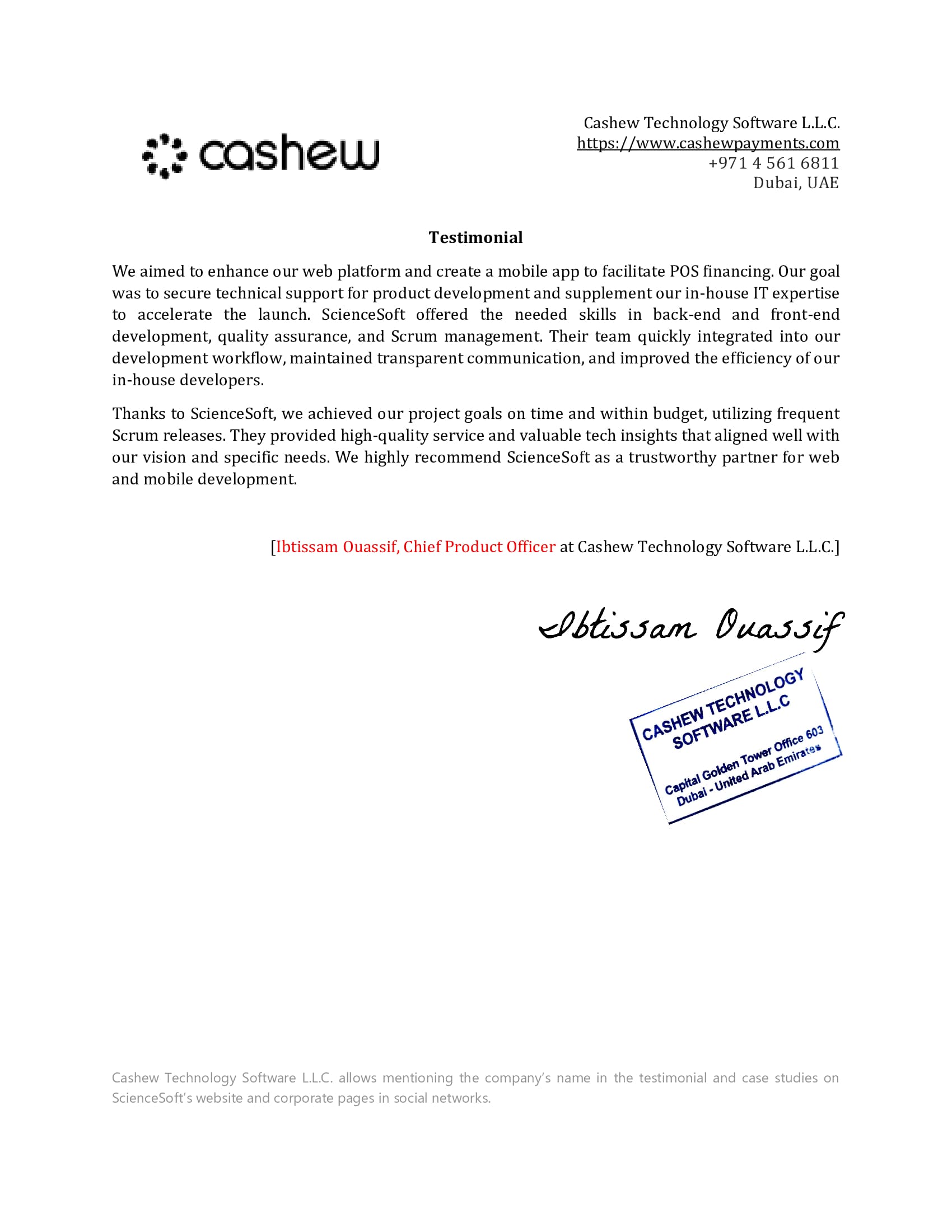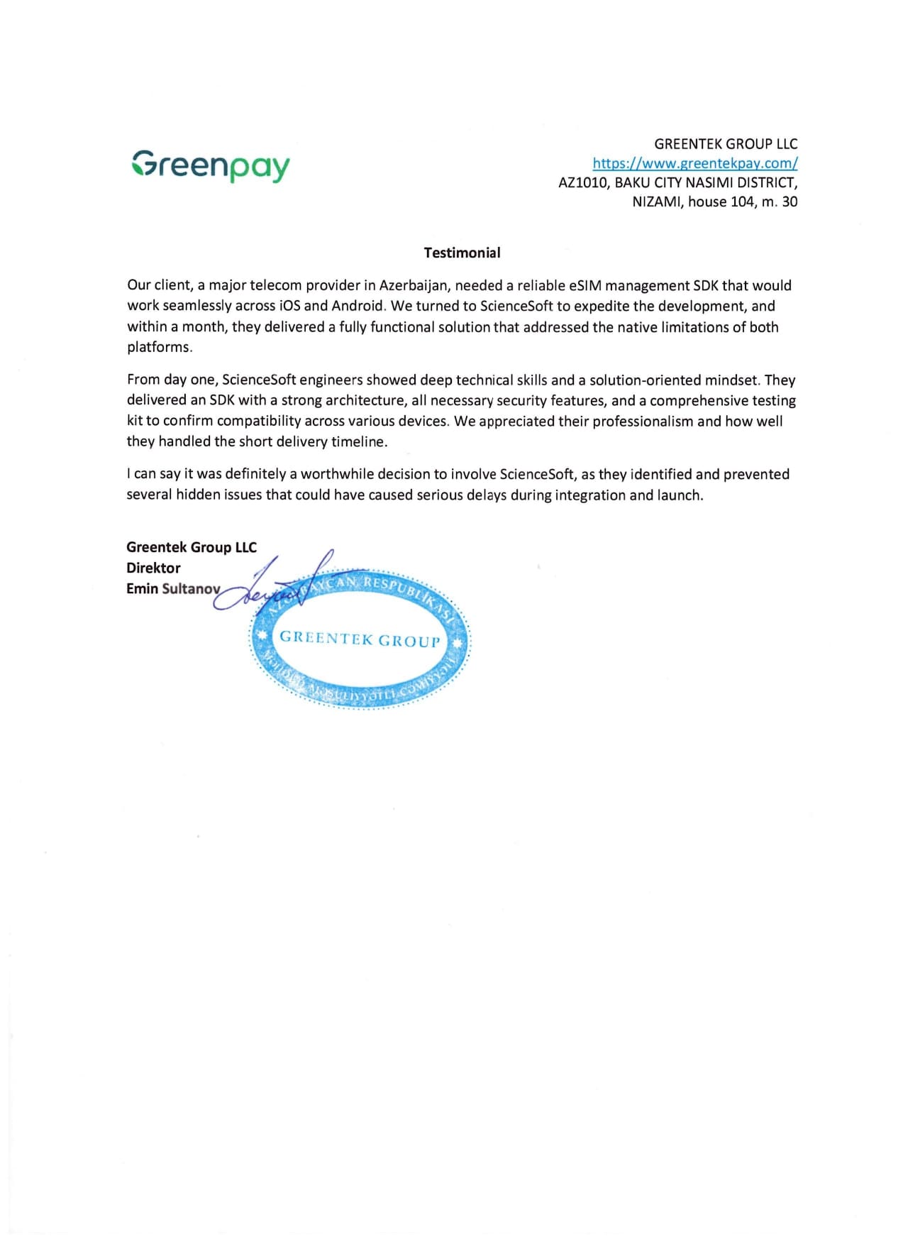 ScienceSoft really cared about the online payment solution (a web app + iOS and Android mobile apps) they developed for my company.
