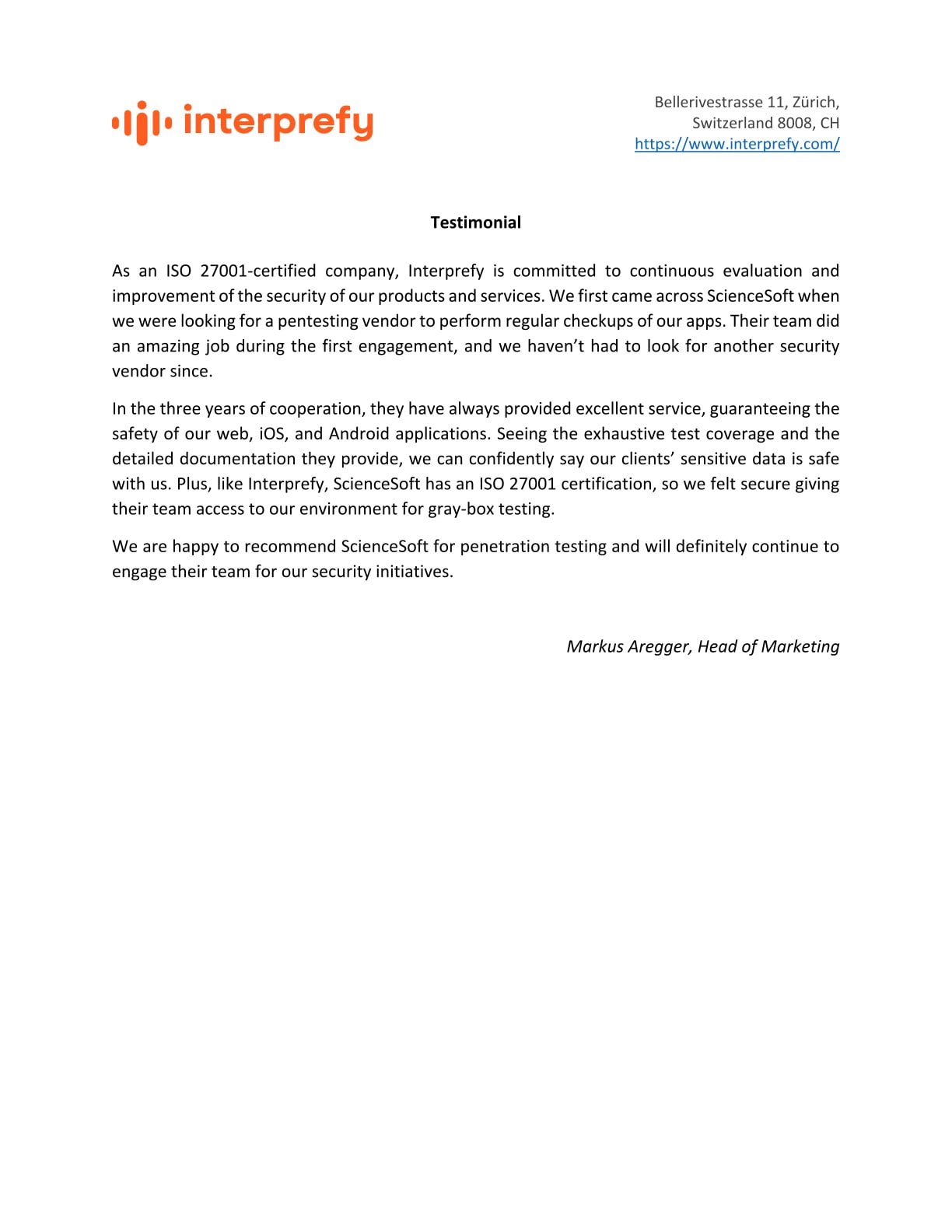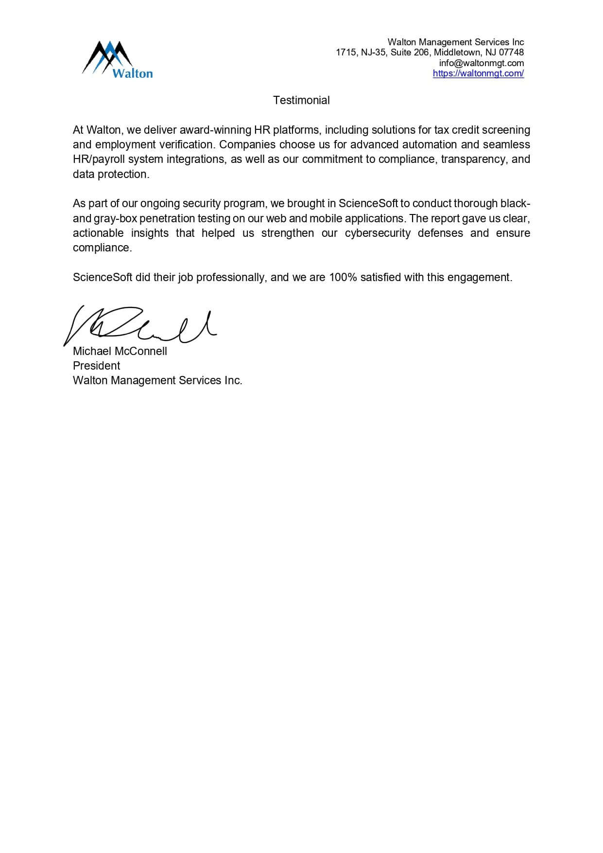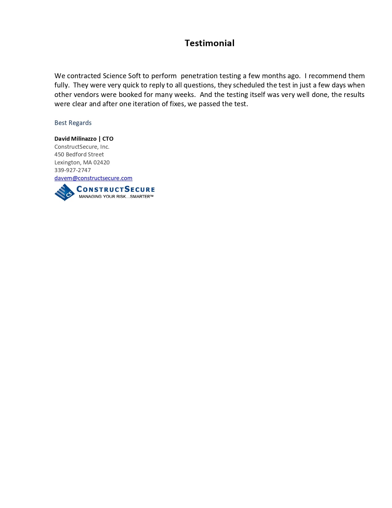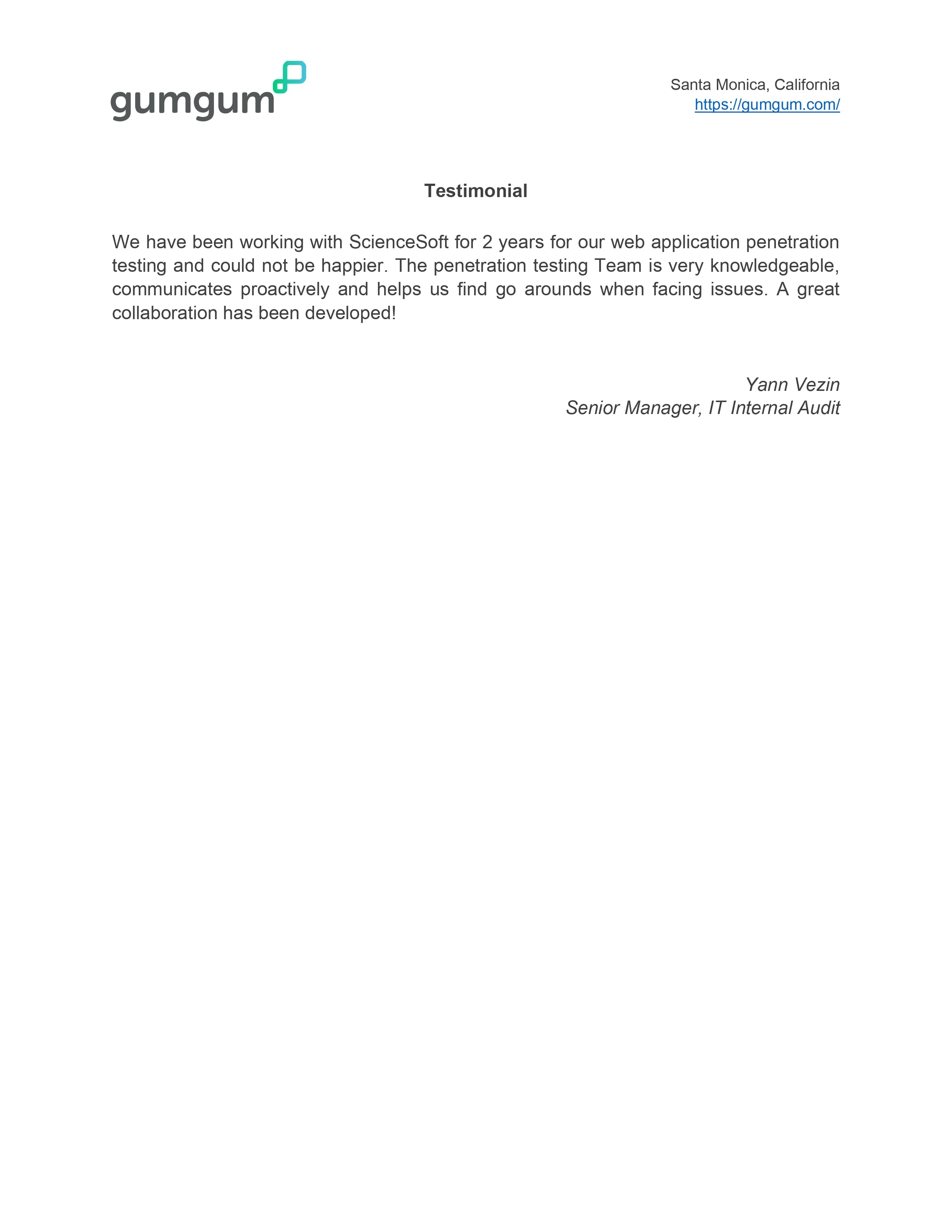 We are fully satisfied with our partnership with ScienceSoft. Their team provided penetration testing in a timely and professional manner.