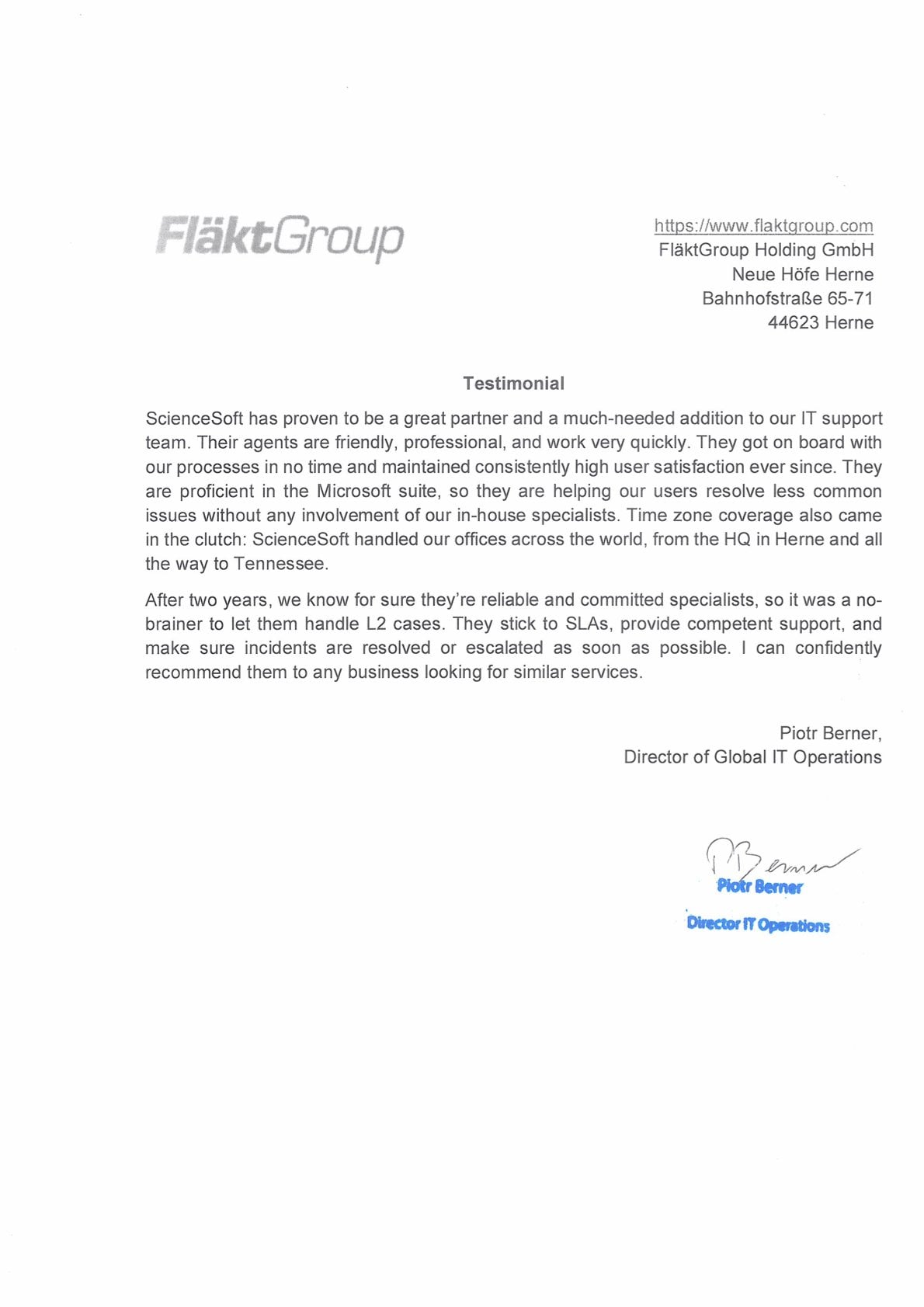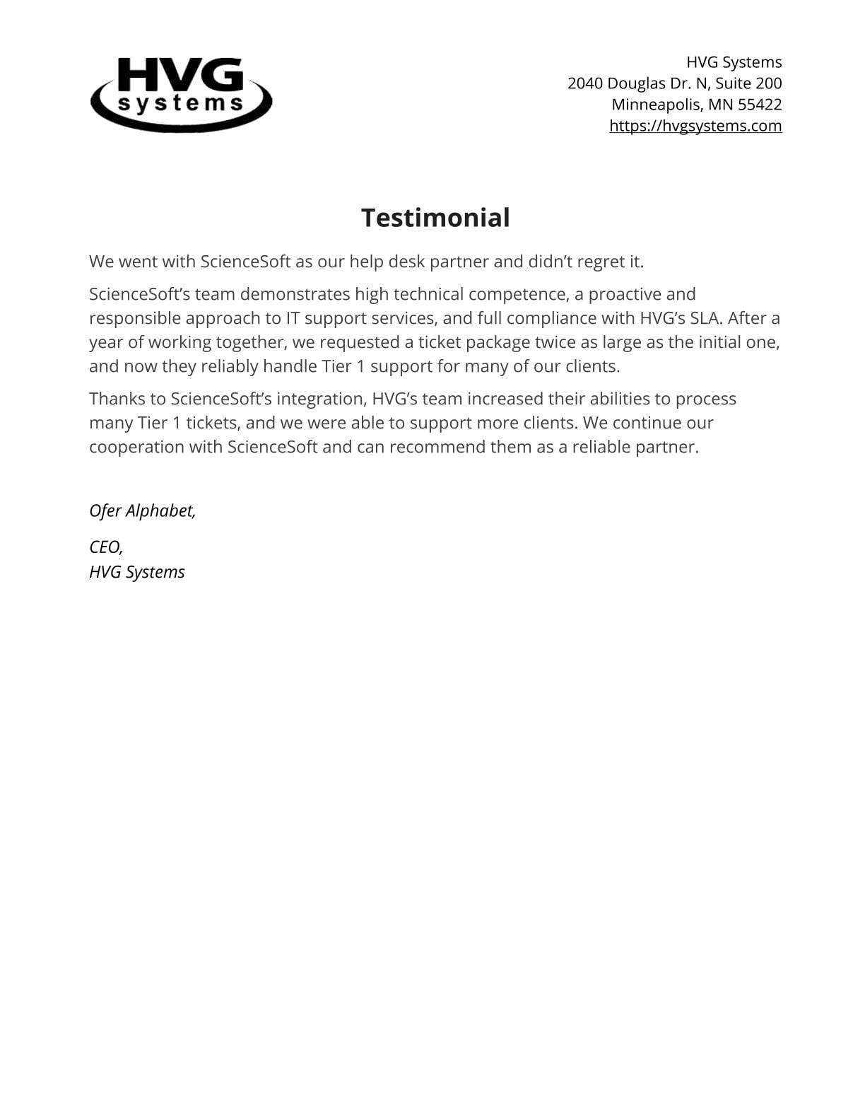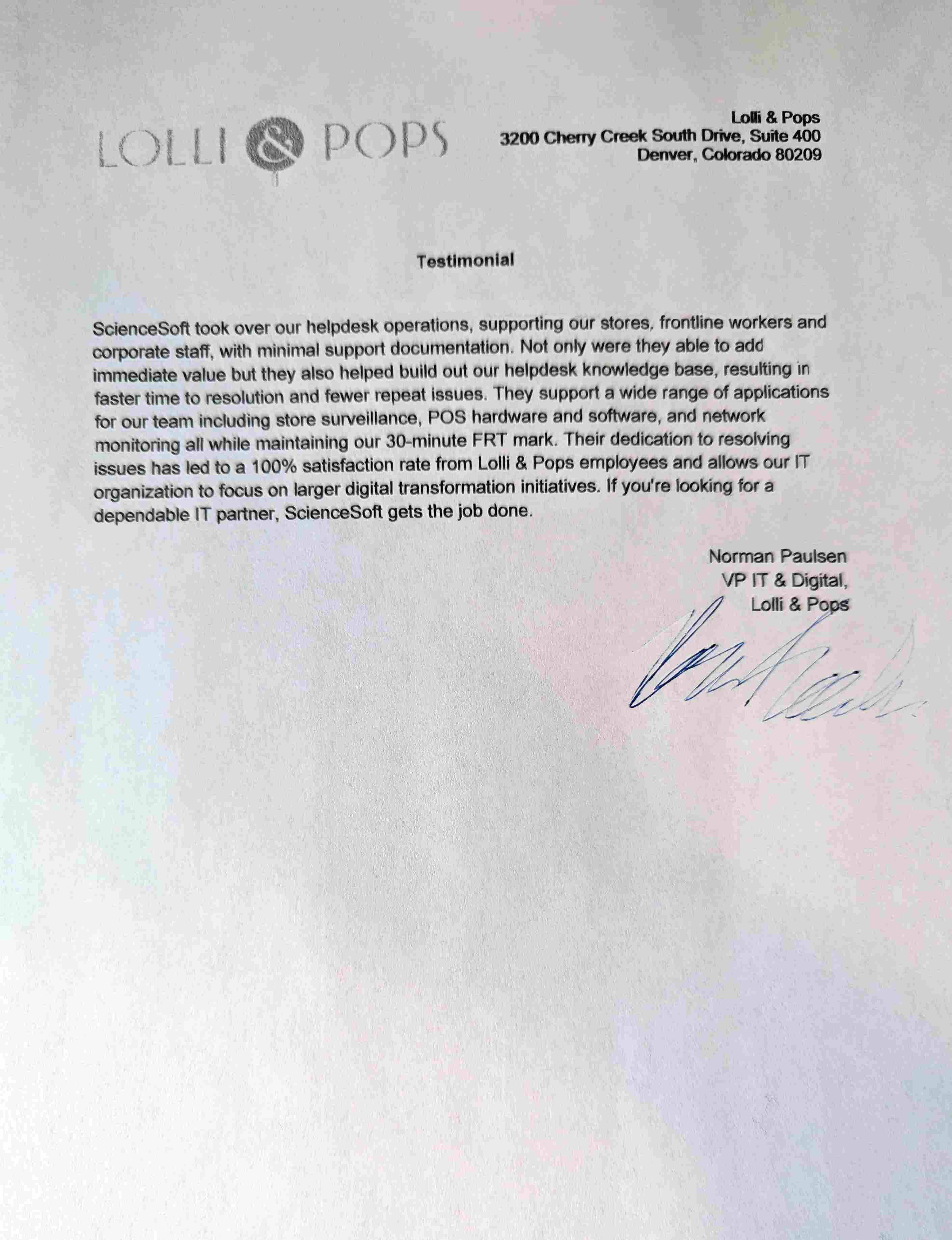 Overall, I would happily recommend ScienceSoft to anyone looking for a transparent, reliable IT support vendor.