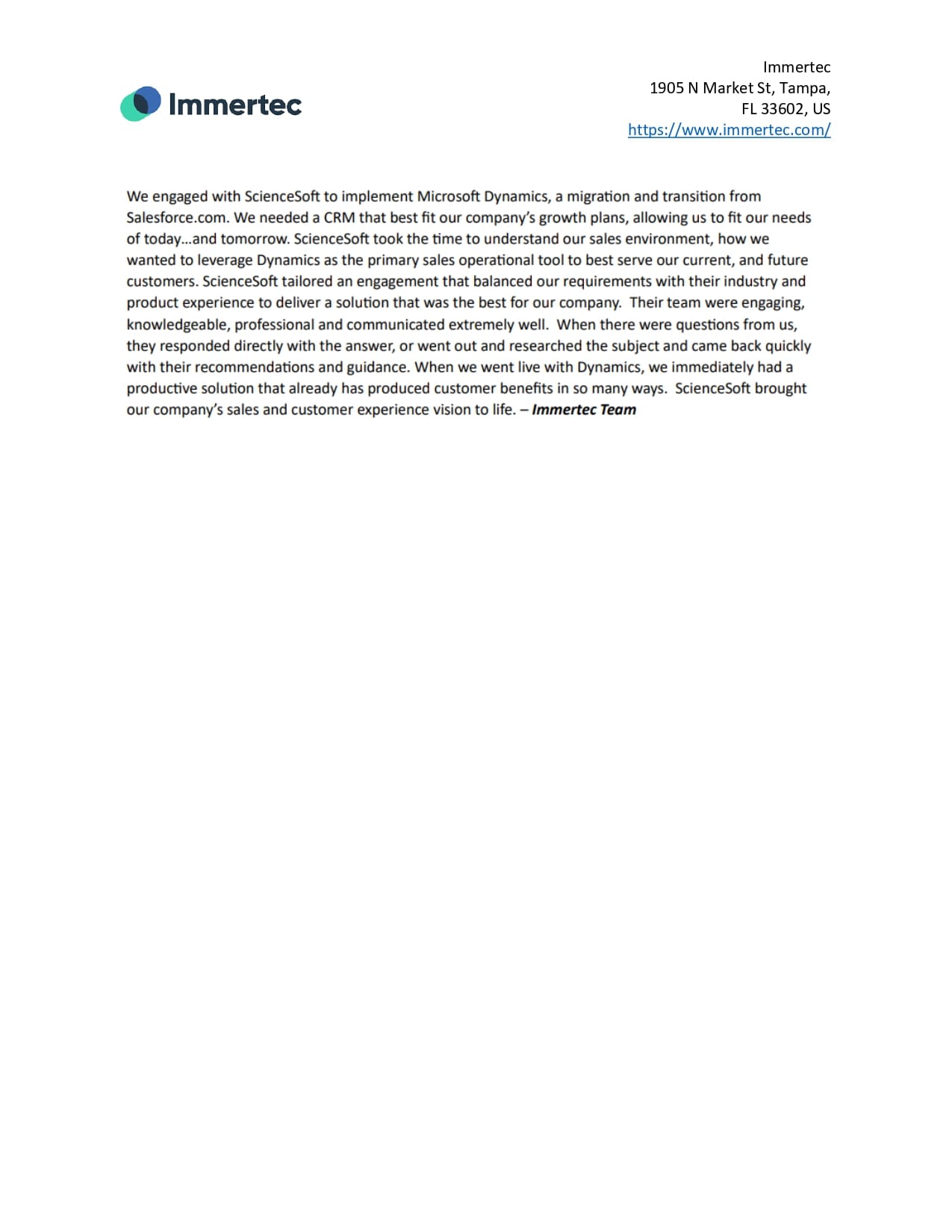 We would like to express our gratitude to ScienceSoft, our vendor for providing Salesforce-SharePoint integration. We have had a fruitful collaboration.
