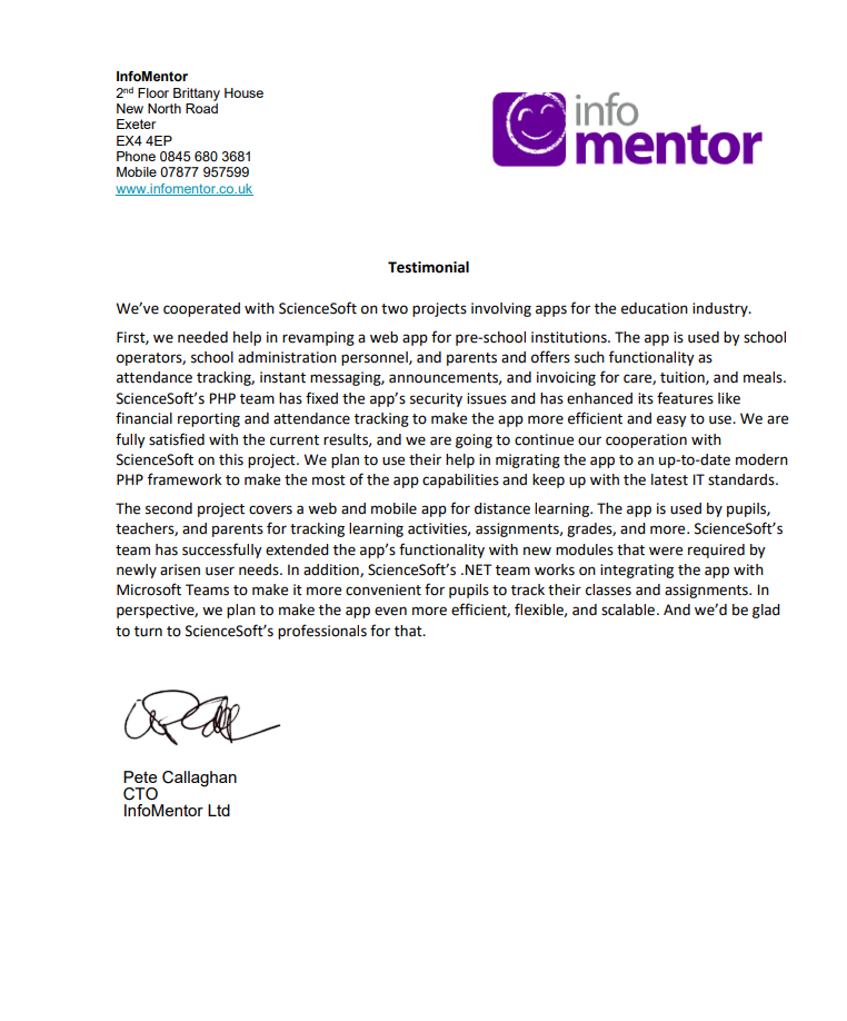 We’ve cooperated with ScienceSoft on two projects involving apps for the education industry. We are fully satisfied with the current results, and we are going to continue our cooperation with ScienceSoft <....>.