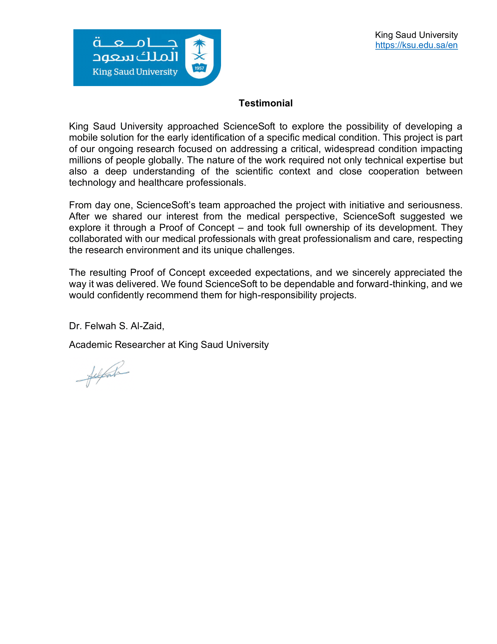 We are happy to have partnered with ScienceSoft and look forward to future collaboration.