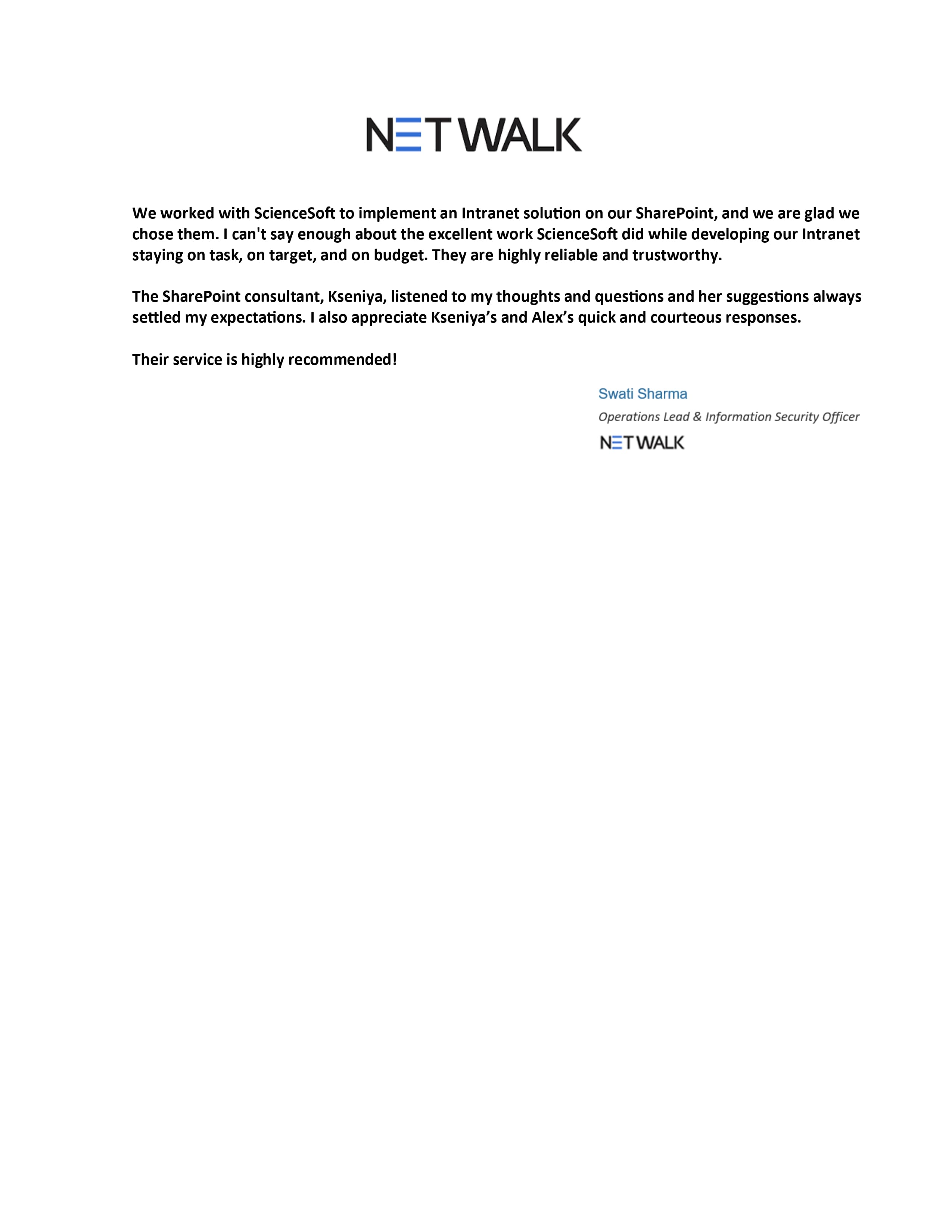 The SharePoint project by ScienceSoft exceeded my expectations. ScienceSoft team is responsive, professional, and easy to communicate with.