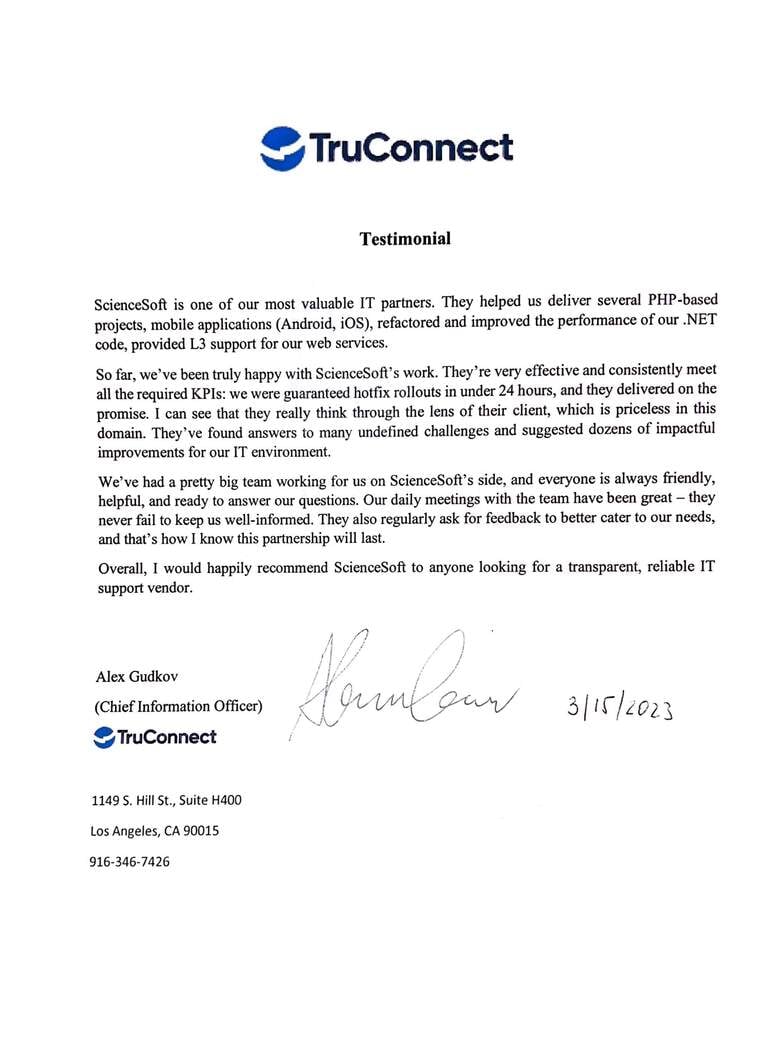 We engaged ScienceSoft as our development partner. We recommend them as a trustworthy partner with skilled technical specialists on board.