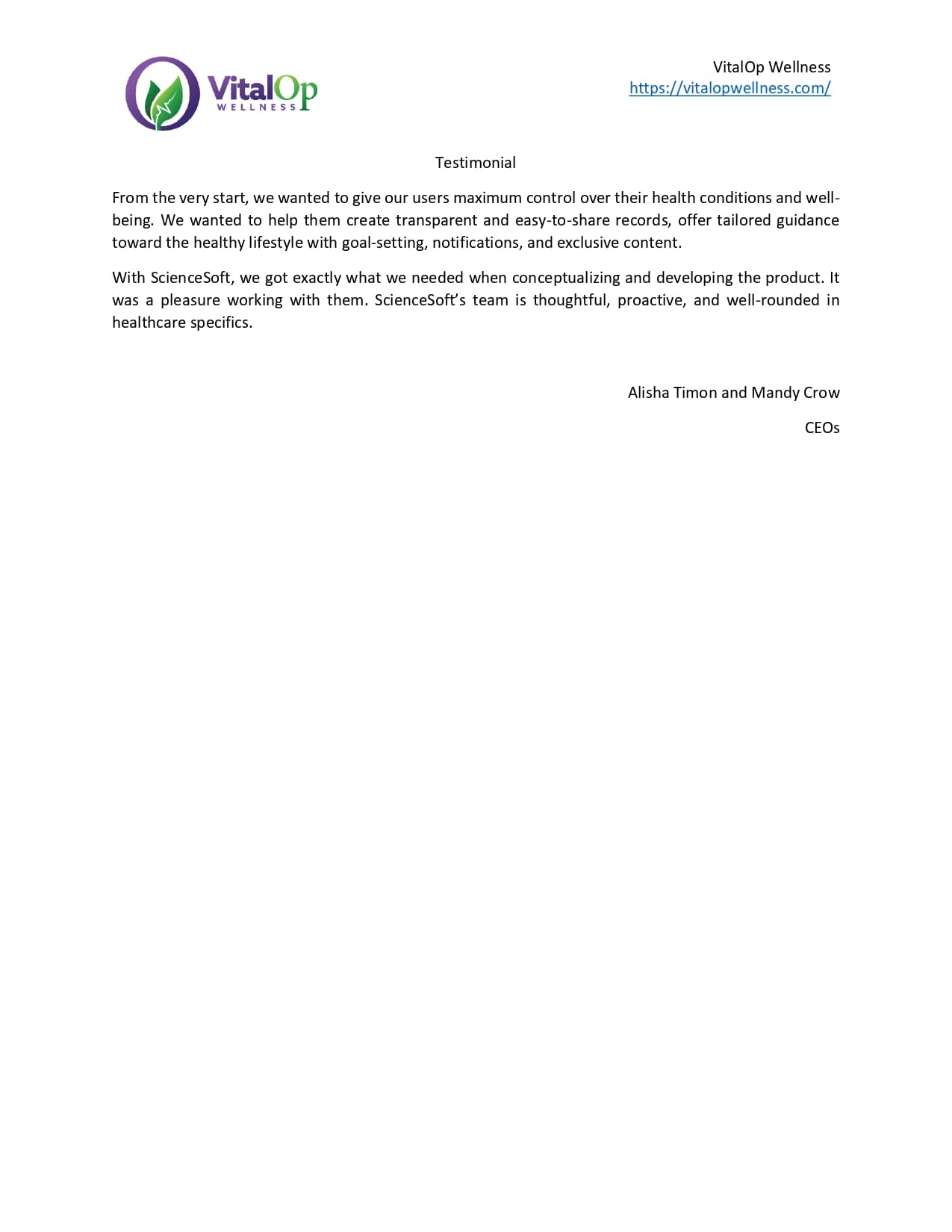 With ScienceSoft on our side, we can fully focus on delivering tailored healthcare solutions to our clients. Highly recommend them!