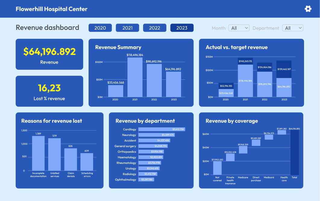 Healthcare BI solutions securely consolidate multi-source healthcare data into a single point of truth and turn it into insightful reports and dashboards. Business intelligence in healthcare enables providers to see and interpret the trends in their care quality, internal operations, staff performance, and financial management.