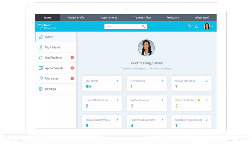 Helps track patient condition using connected medical devices or manual logging. The system analyzes the data and alerts the patient and physician when it detects abnormalities.