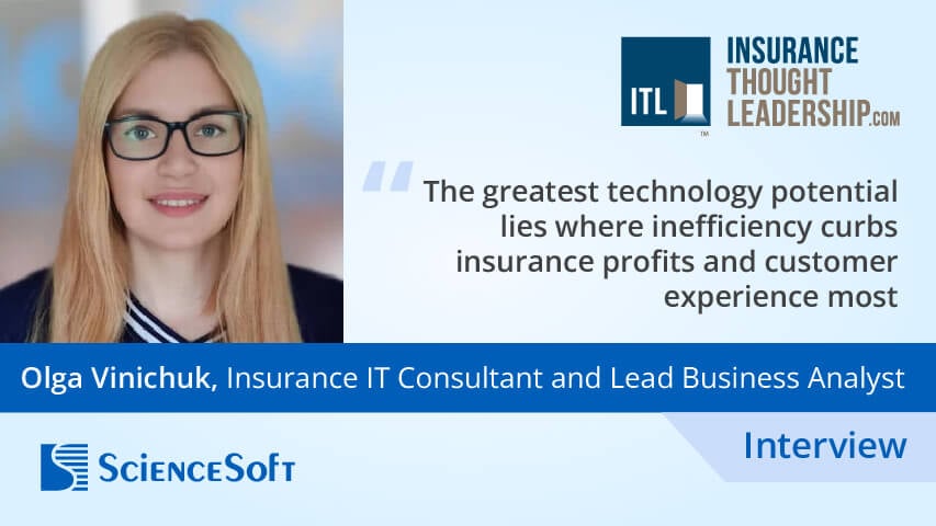 Olga Vinichuk, Insurance IT Consultant at ScienceSoft, speaks with Paul Carroll from Insurance Thought Leadership about which insurance tasks are best suited for automation and how traditional and AI-powered tools improve insurers’ operations.