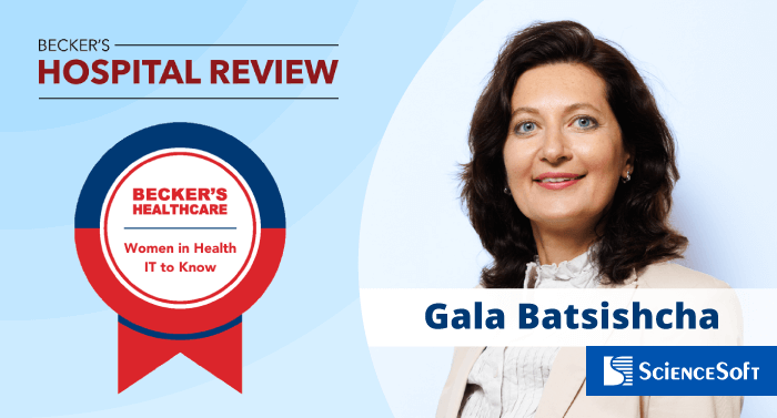Gala Batsishcha, Healthcare IT Consultant at ScienceSoft, has been named one of the Top 100 Women in Health IT to Know in 2025 by Becker’s Hospital Review.
