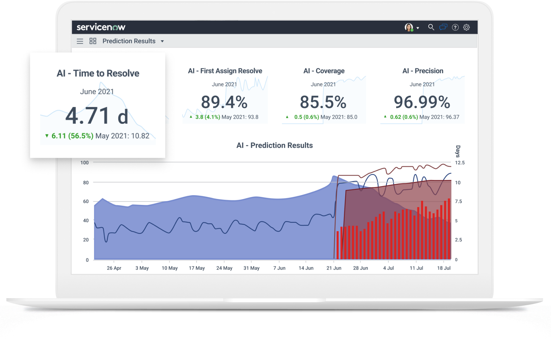 Managers can recommend coaching and training for their teams based on skill gaps identified by ServiceNow predictive analytics.