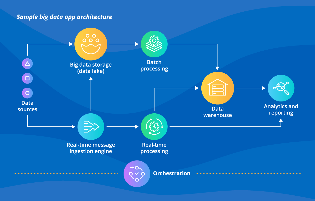 - Number and type of big data application architectural components (e.g., analytics app and middleware, a stream processing solution, a machine learning system, etc.).
