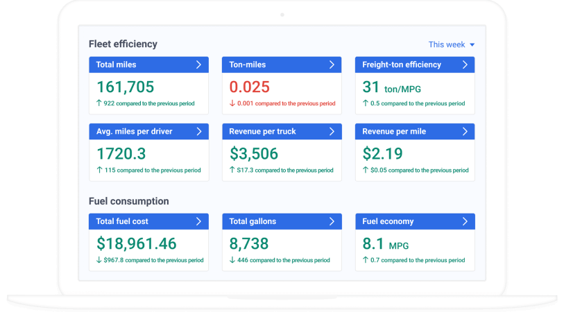 You can get a 360-degree view of fleet performance by tracking average time on route, load utilization rate, engine idle time, and other KPIs, and identify root causes of fuel waste and high emissions (e.g., by establishing connections between emission levels and certain vehicle types and routes). With IoT-based vehicle health analytics, it is also possible to conduct predictive maintenance.